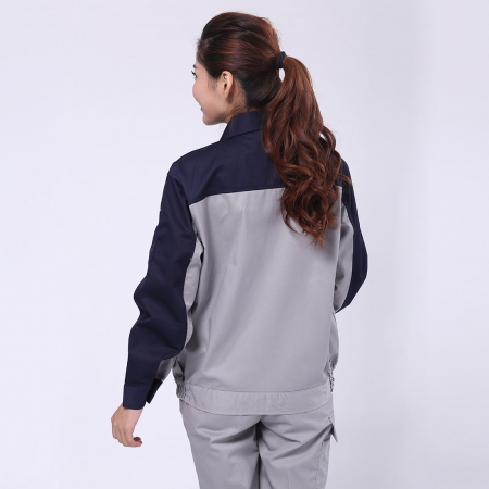 卡其拼藏青涤棉纱卡长袖工衣AC109