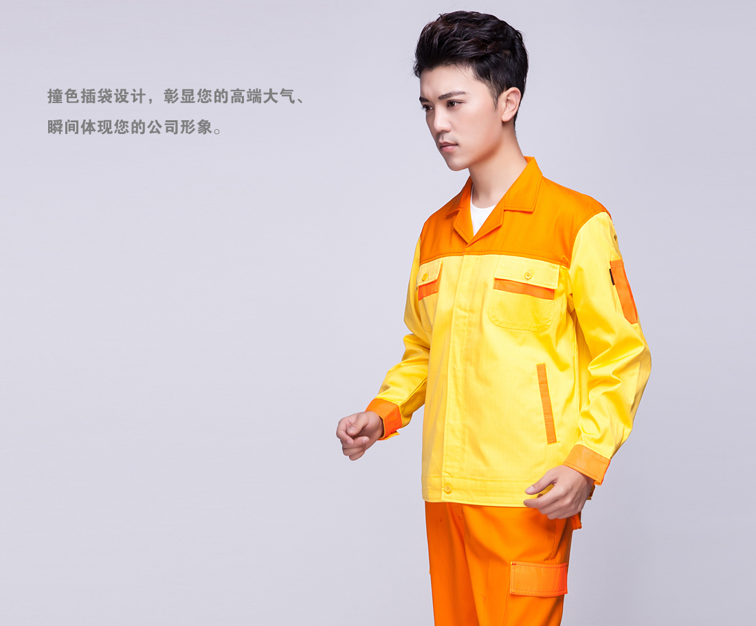 黄色拼橘黄春秋工作服AC03-4