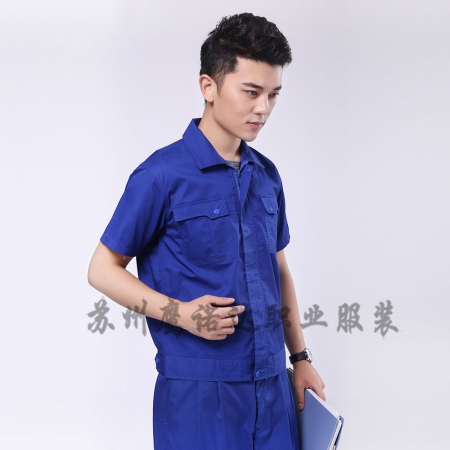 苏州鹰诺服装:艳蓝色夏季工衣套装AD082