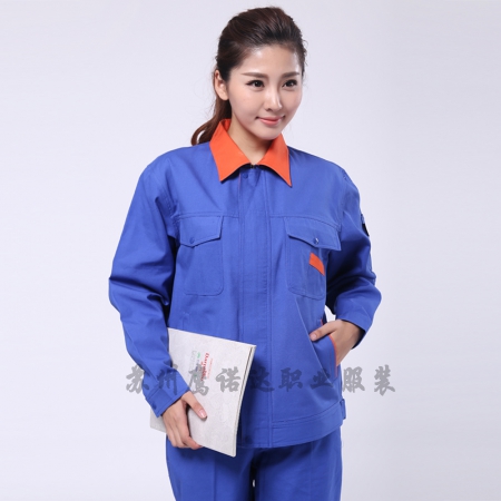 苏州鹰诺服装:深蓝配桔红电子工作服AC069