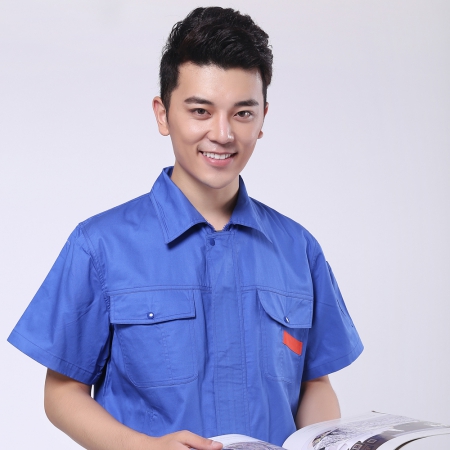 苏州鹰诺服装:深蓝配桔红春秋工作服AC069