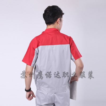 苏州鹰诺服装:橘黄拼黄色短袖工作服AD09-5