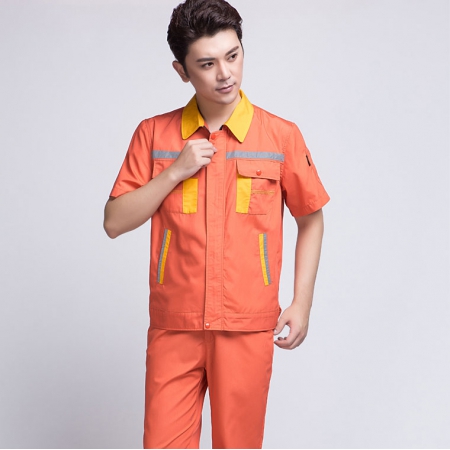 苏州鹰诺服装:绿灰拼桔黄夏季工作服AD106