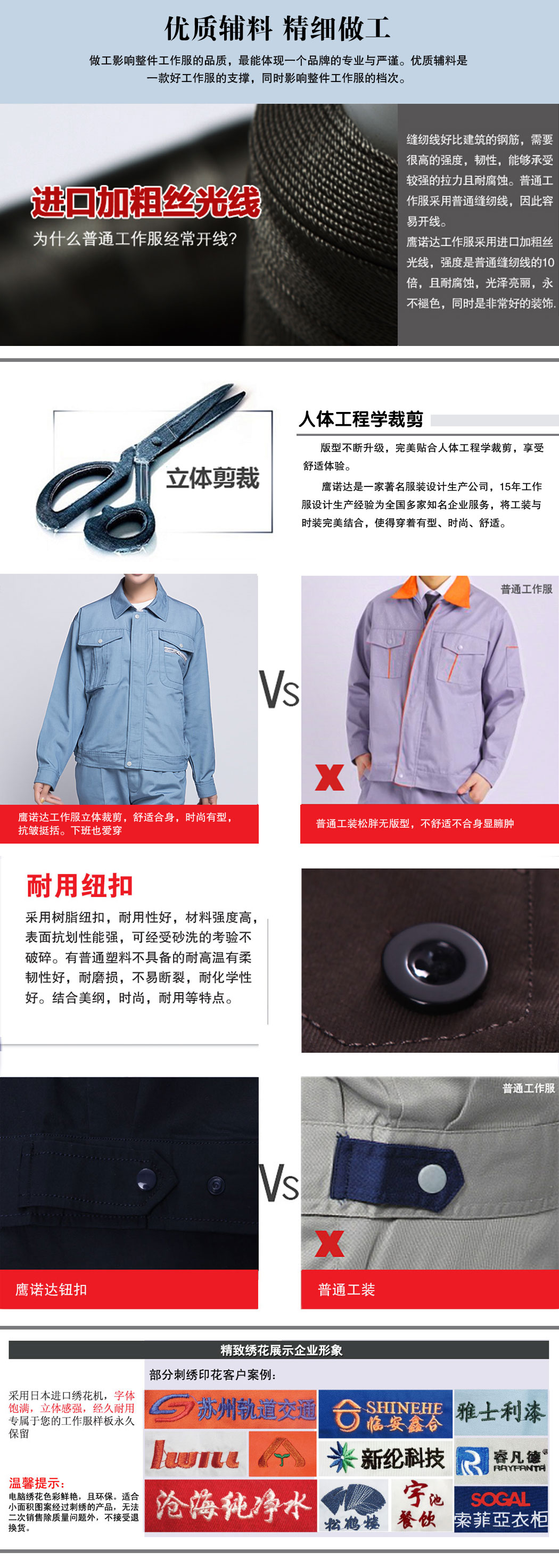苏州鹰诺服装:艳蓝配浅灰工作服AC081