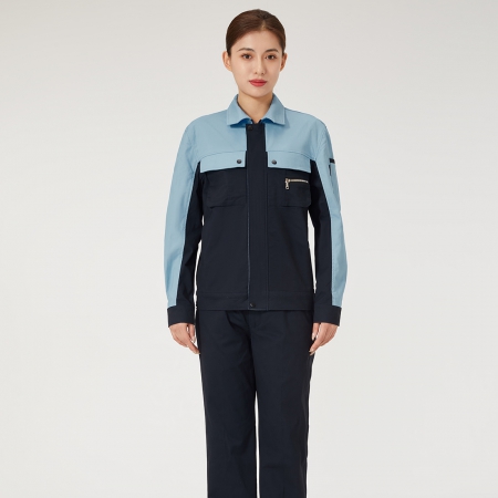 苏州鹰诺服装:浅灰拼艳蓝色工作服AC2204-4