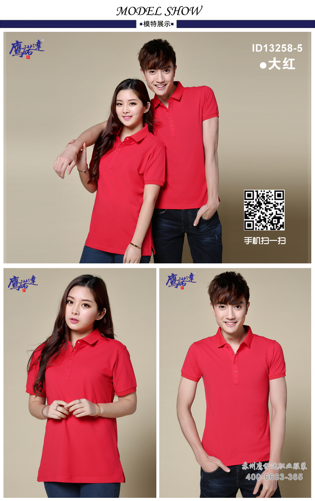 大红翻领纯棉莱卡Polo衫ID13258-5