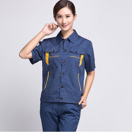 苏州鹰诺服装:墨绿拼黄色夏季工作服AD08-3