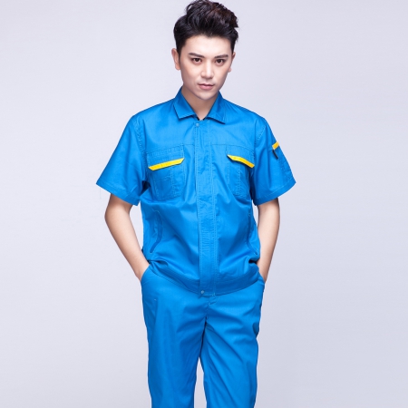 苏州鹰诺服装:深兰色短袖工作服AD04-2