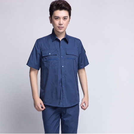 苏州鹰诺服装:深兰色短袖工作服AD04-2