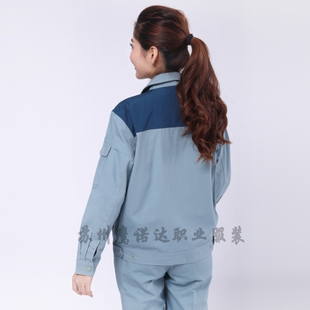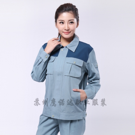 苏州鹰诺服装:湖蓝拼浅灰工作服AC20-2