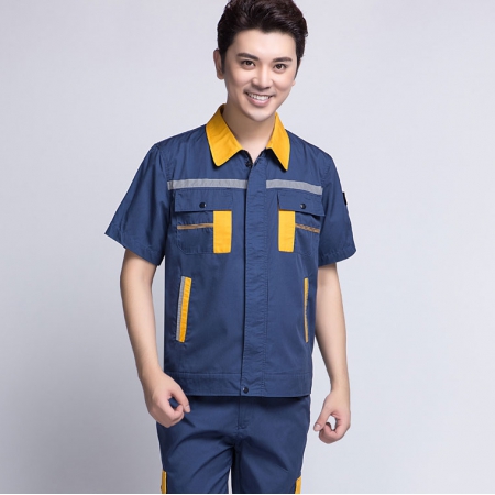 苏州鹰诺服装:深蓝配桔红春秋工作服AC069
