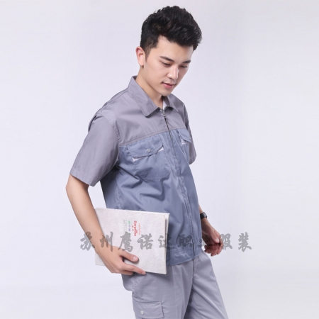 苏州鹰诺服装:灰色拼藏青夏季工作服AD089