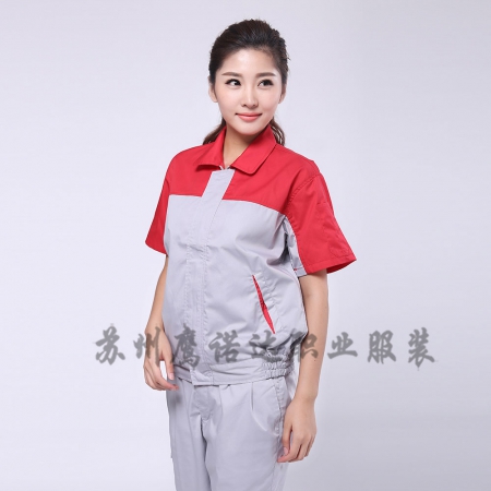 苏州鹰诺服装:橘黄拼黄色短袖工作服AD09-5