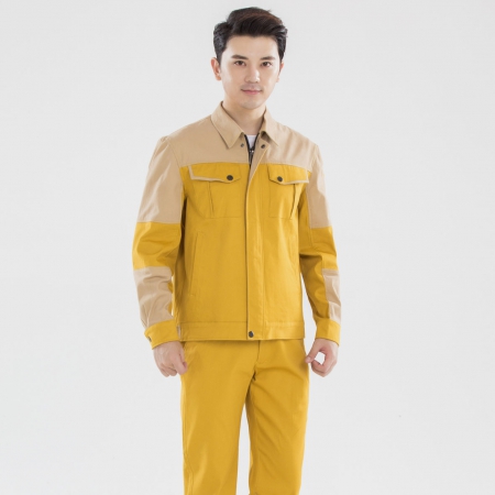 苏州鹰诺服装:黄拼驼色工作服AC17-4