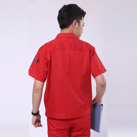 苏州鹰诺服装:藏青拼大红工作服AD103