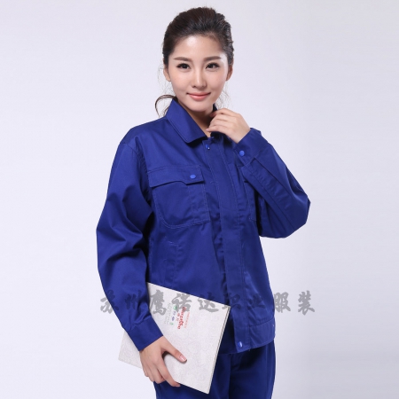 苏州鹰诺服装:艳蓝配浅灰涤棉纱卡仓库工作服AC081-CC