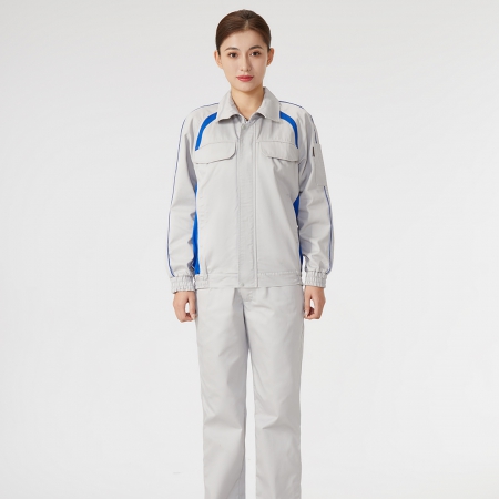 苏州鹰诺服装:浅灰拼艳蓝色工作服AC2204-4