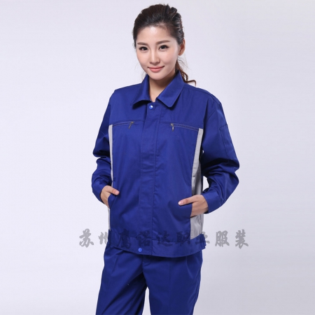 苏州鹰诺服装:艳蓝配浅灰涤棉纱卡电池厂工作服AC072-DZ