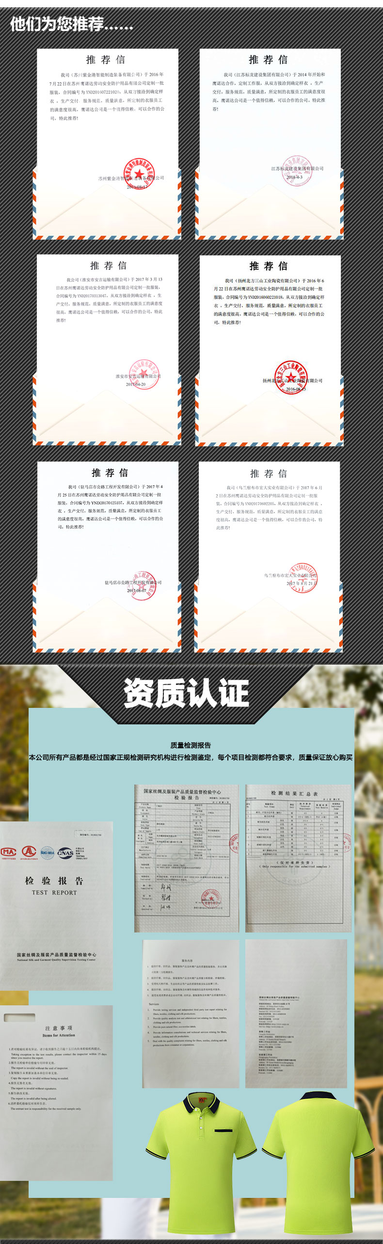 正是坚守着这种信念,历经16年的发展,由最初的10多人的起家的小企业,发展到今天拥有企业盐城骏放服饰,苏州鹰吉派劳保,苏州凯宏劳保下属3家企业,员工人数5000余人的大型企业,2001年按国际惯例组建了三大中心,生产中心以白大褂为龙头,推动其它产品,如t恤,西服,冲锋衣,安全帽等,营销中心从事产品开发和市场销售,目前遍及全国的营销网络已经形成。售后中心以帮助顾客解决问题的原则,7*24小时服务!