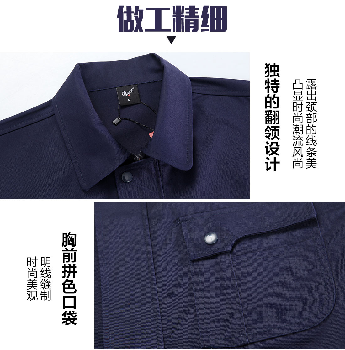 游客于 2018-07-29 19:54:53 发表苏州鹰诺服装:深蓝涤棉纱卡电力工作服AC070-DG