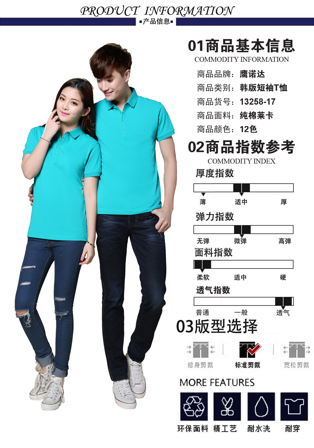 • 材质:全棉莱卡