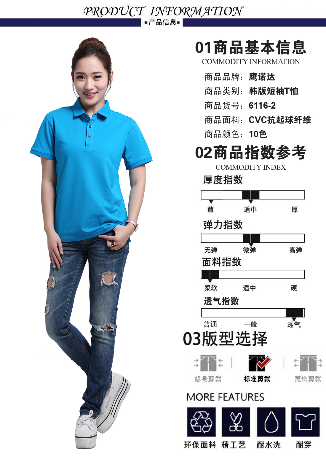 彩蓝提花领CVC抗起球纤维Polo衫ID6116-2