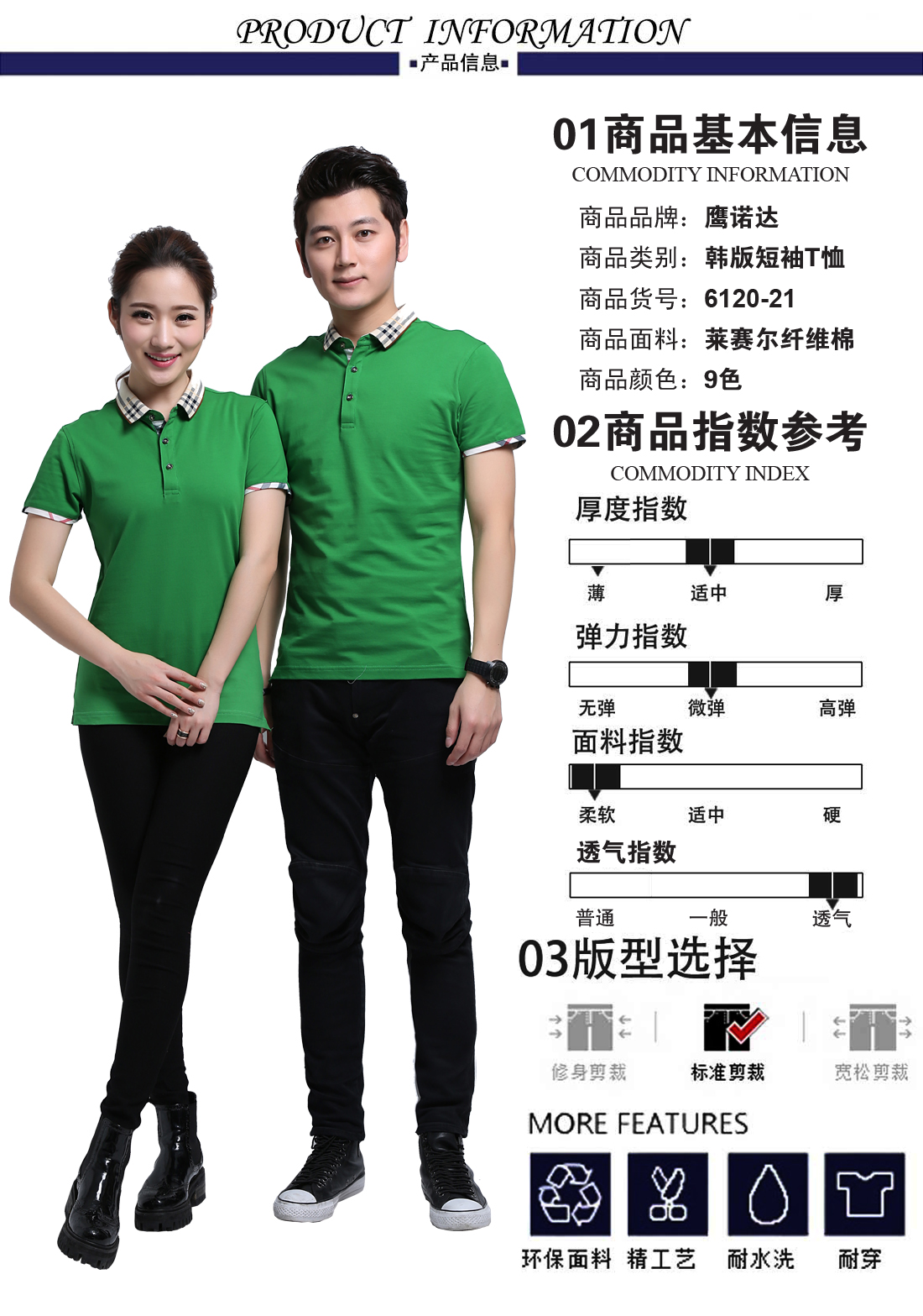 游客于 2017-06-20 08:50:36 发表苏州鹰诺服装:叶绿提花领莱赛尔纤维棉Polo衫ID6120-21