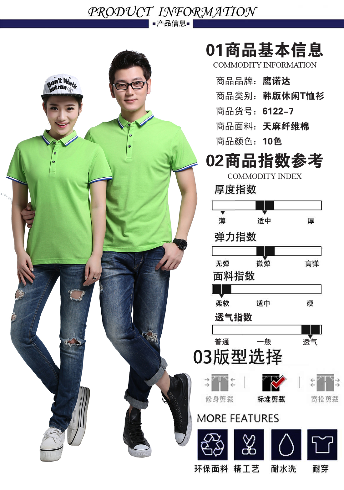 果绿电脑提花领天麻纤维棉Polo衫ID6122-7
