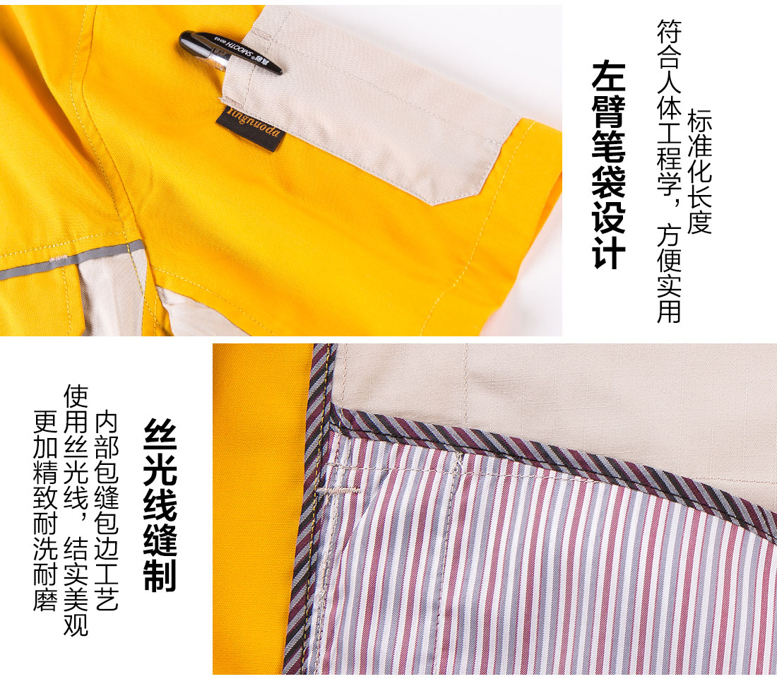 游客于 2017-05-25 08:44:25 发表苏州鹰诺服装: 米色拼黄夏季工作服AD08-1