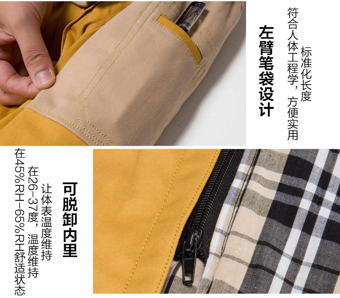 游客于 2018-06-10 12:39:51 发表冬季服装厂家冬季工作服黄拼灰色MF20-4