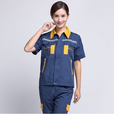 苏州鹰诺服装:蟹清拼橘黄春季工作服AC06-4
